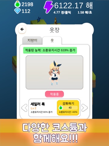Collect various costumes to make the girl stronger.