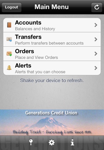To sign in with this application, please contact Generations Credit Union at (360) 357-5660 to obtain a UserID and Password associated with your account. Once you have been given a UserID and Password, you will have access to all of the applications features.