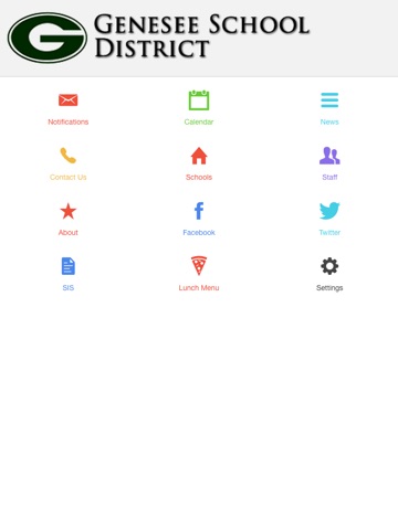 This App has Direct Integration with Genesee School District/School websites. Contact information, Schools Information, Staff List, Calendar & News are updated automatically. This Mobile App enables district to push news about school activities, critical announcements, bulletins and events on a daily basis, and provide parents, students and staff with important information they need every day. Push Notifications can now be sent directly to the home screen of every parent and student in the Genesee School District.