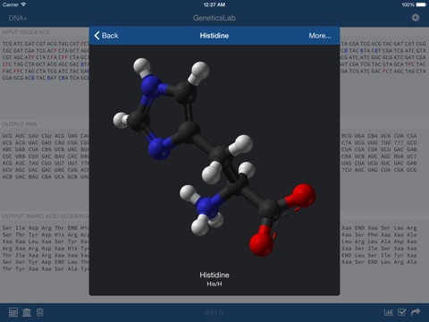 GeneticsLab is an excellent utility for those learning Biology, Genetics or any related studies. Automate the most common operations involving genetic code such as DNA to RNA conversion, DNA transcription and translation. You wont need to do them manually anymore. And yes, because learning visually is better, you can now experiment with a stunning 3D model of your sequence. These are some of the things it can do: