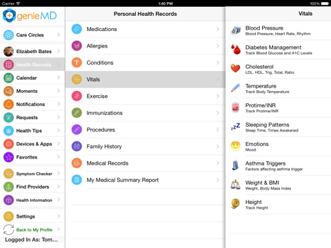 * Track your vitals – From blood pressure to glucose levels, GenieMD will help you keep track and monitor the vitals that matter most.