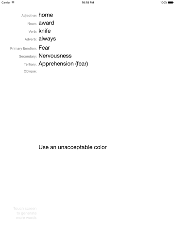 Genn generates random numbers, words, and emotions for you to use as the seed for your next great idea. It could be as trivial as choosing what to have for lunch, or provide a creative breakthrough while composing music. The potential applications are limitless.