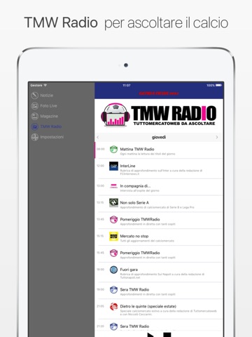 Puoi ascoltare TMW Radio, la radio per sentire costanti informazioni ed approfondimenti sul calcio.