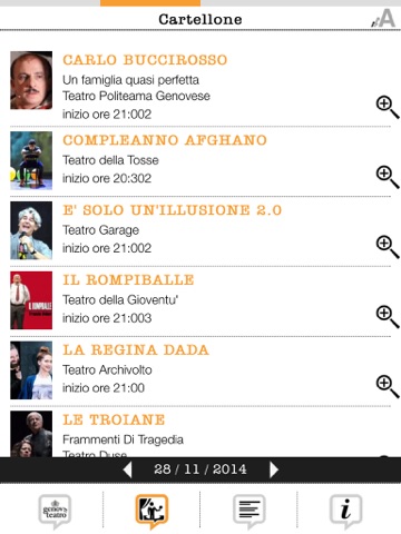 Tutti i Teatri di Genova insieme offrono con questa App le informazioni su tutti i loro spettacoli e la possibilità di memorizzare gli spettacoli nella agenda del vostro smartphone o tablet. Le informazioni su ciascun spettacolo vengono pubblicate direttamente dai Teatri, che ne garantiscono aggiornamento, qualità e correttezza. Il progetto è promosso dal Comune di Genova . LApp funziona come un vero e proprio "cartellone unico" dei Teatri di Genova .