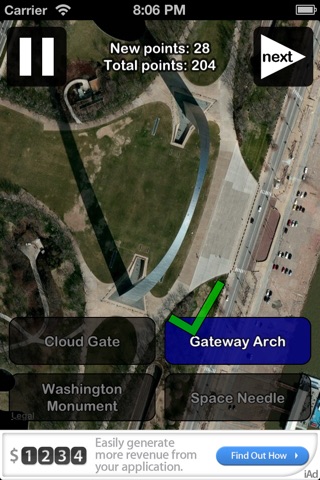 A geographical trivia game where you identify famous American landmarks in satellite images. You have 40 seconds to identify each landmark, but the faster you answer, the more points you earn. The landmarks start off easy, but they get harder the longer you play. Only a true Geography Genius can ace this game!