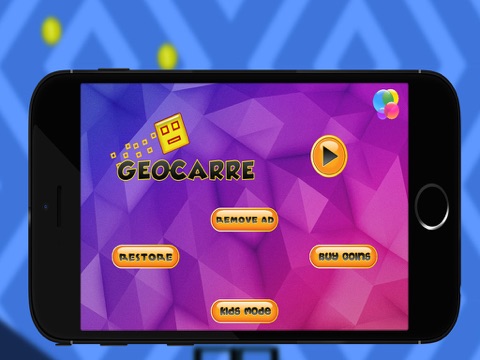 Prepare for a near impossible challenge in the world of GeoCarre. Push your skills to the limit as you jump, fly and flip your way through dangerous passages and spiky obstacles.