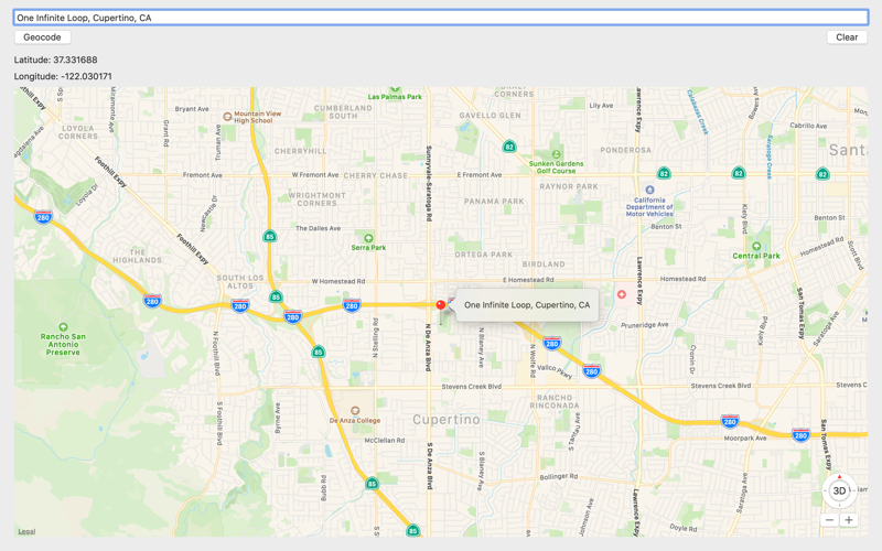 Allows users to get the latitude/longitude pair for the address entered by the user. The latitude and longitude can also be copied and pasted into other applications.