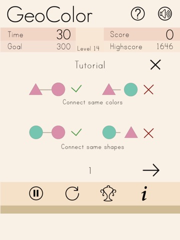 Connect geometrical objects of the same shape or the same colors with your finger. Either the shape or the color of two subsequent tiles must match. Find the longest combinations to get more points and time. Reach the highest level and score higher than your friends!