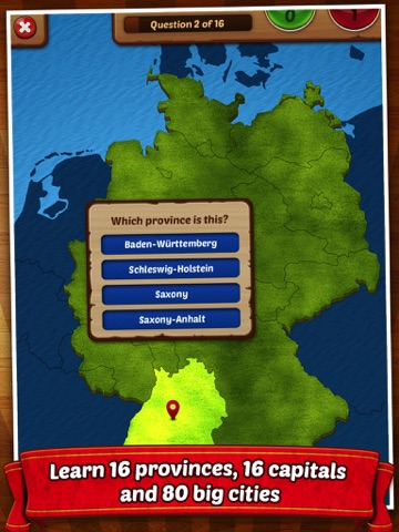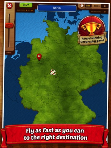 GeoFlight Germany is a fun, addictive, challenging and educational geography game that will push your brain to its limit! Soar through the sky and learn the names and locations of provinces, cities and capitals in a game like no-other!