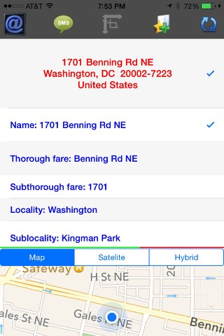 See geographic information for your current location, share it with a contact, or save it as a favorite.The geographic information about your current location includes address, latitude, longitude, altitude, maps link and any other geographic detail that is publicly available for that specific location. Easily share any of this information to anyone in your contacts list via SMS or Email.