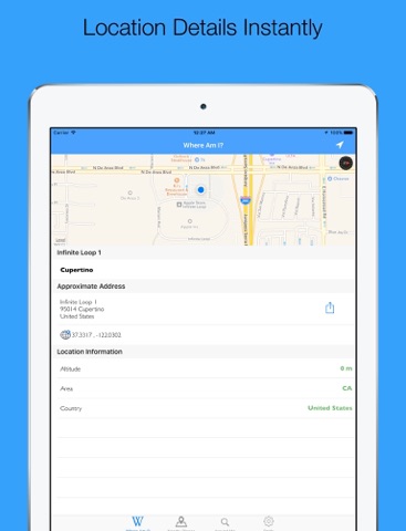Where Am I ? tells you all you need to know and more. Perfect for road tips and traveling. Find out what street you are on or what building youre looking at. Email and share your location with a pinpoint map. Discover interesting places around you and browse new places in your neighborhood.