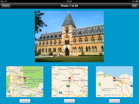 You can play using the application photos or the geolocalized photos of your own photo library.