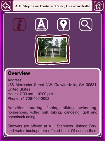 Georgia State is a grand American Vacation destination you dont want to miss! Use this app to Provide Complete information about RV Parks and RV Campgrounds in Georgia State by Location, Amenities, Parks, Address, Information, Facts, Pictures, Map, Directions, Rout Map and Near Search.