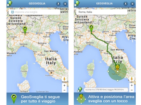 Hai mai mancato la fermata? Mai avuto paura di perdere la stazione del treno se ti fossi addormentato? GeoSveglia ti avviserà quando sarai vicino alla tua destinazione a prescindere da quanto tempo ci metterai per arrivare.