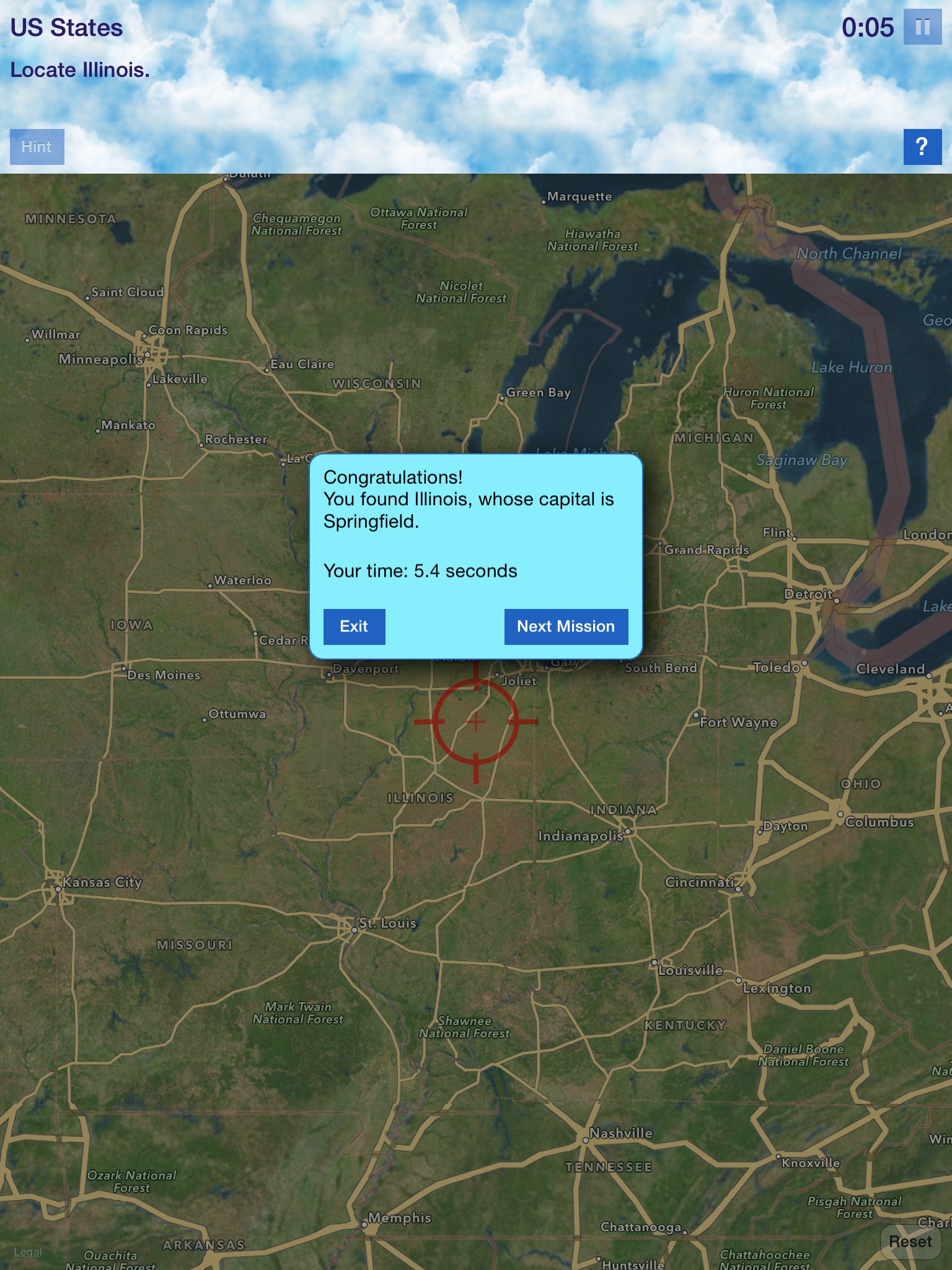 Your goal is to complete a series of missions as quickly as possible. Each mission challenges you to find a location on a map such as the capital of Texas or the African country of Rwanda.