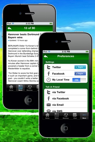 • News and score sharing via Facebook, Twitter and Email