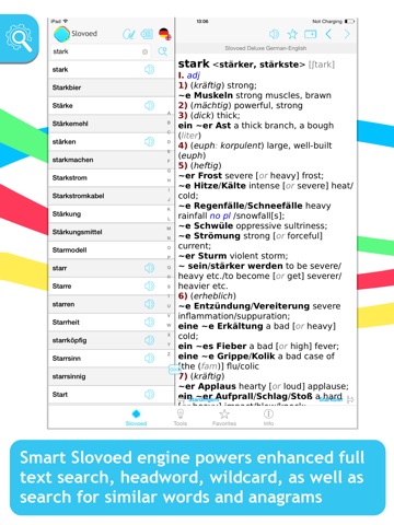 Ich kenne das Programm bereits von meinem PDA. Es funktioniert einwandfrei, die Sparachausgabe ist Klasse und die Bedienung mit einem iPhone sowieso einfach. Deluxe bietet enorm viele Einträge und kann mit beinahe allem aufwarten. Top wäre es, gäbe es noch eine Lernfunktion für den Grundwortschatz!