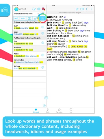 Sehr positiv: grosser Umfang, Audiobibliothek Sehr negativ: mangelhafte Inhaltsumsetzung. Beispiel: Ich suche "gone". Ich finde: >>>a) pp of see go b) prep (Brit) c) adj pred, inv<<< usw... alles etwas nebulös. Ich benutze also die Links. Der Link "pp of" führt mich zu der Information "...pages see 101-123". ABER: wo sind diese Seiten? hat ihr einer einfach die Textausgabe eines Wörterbuches digitalisiert? Usw.... Fazit: Ich habe noch mehr Wörterbücher auf dem iPhone und werde es als Ergänzung behalten. Das Programm ist ca. 5 € wert, aber nicht 20€!