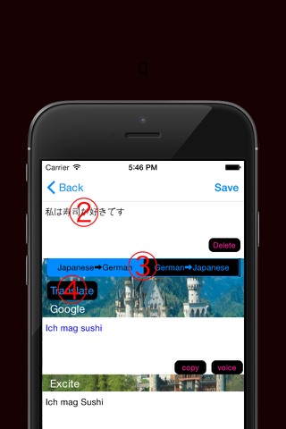 This is the app to translate between Japanese and German.