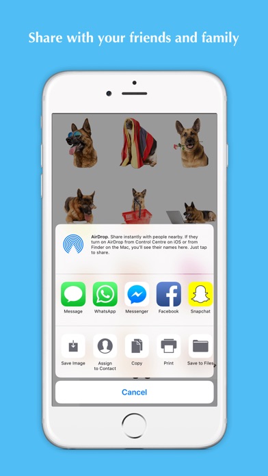 Express your love for this intelligent, courageous, loyal breed of dogs with these cute and colorful emojis stickers. View and send them via text message, and also in ANY social media application that allows you to use photos.