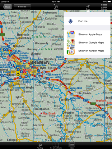 - When using the app in an online mode, you can transit from any map section to a corresponding section of a service of your choosing (Apple Maps, Gоogle Maps, YandexMaps) and back again.