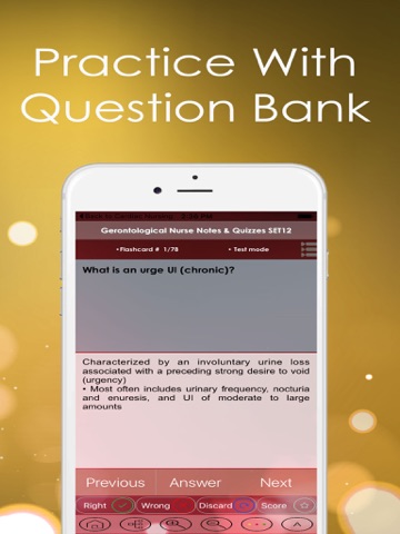 This app is a combination of sets, containing practice questions, study cards, terms & concepts for self learning & exam preparation on the topic of Gerontological Nurse.