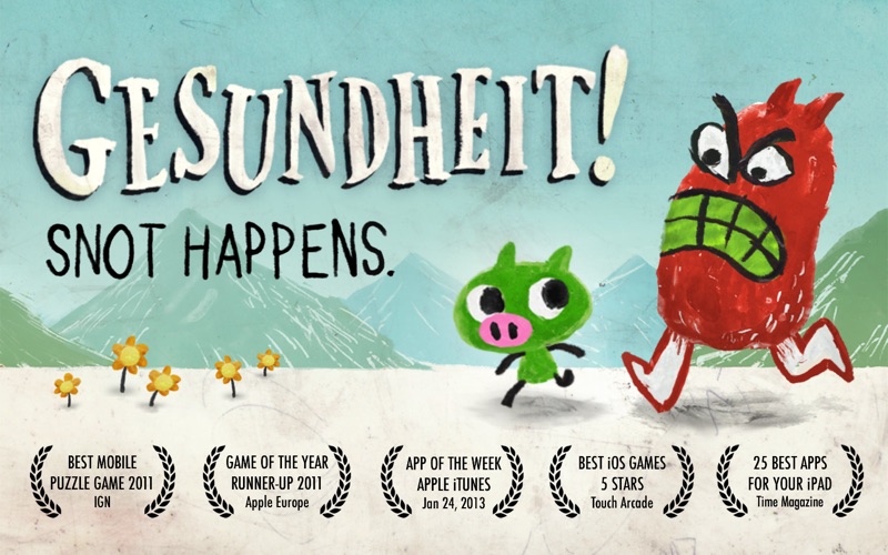 Gesundheit! combines extraordinary hand-drawn visuals and animation with an infectious gameplay to create a vibrant and colorful world where cute characters face off against wacky monsters, pigs will fly, and snot happens!?