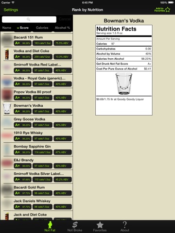 Theres no options for adding on drinks and the website says that the calorie calculator should tell you your BAC and total carbs and calories but this is nowhere to be found in the app. Although the alcohol selection is pretty okay. Besides the fact that there isnt dirty martini or Titos vodka which is quite popular these days!