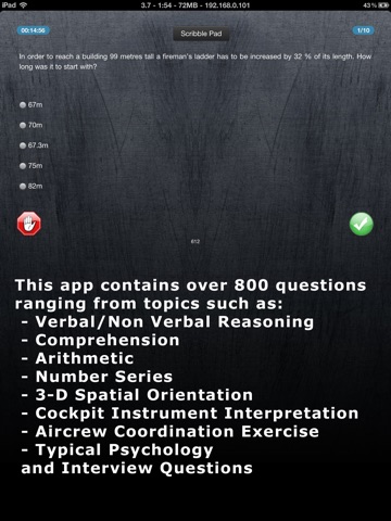 I purchased this app for my daughter who is in the midst of trying to decide if shed like to become a pilot after high school. Shes already taken a few flight lessons so I bought her this app so she can get a feel for what to expect. She loves this app! Its definitely worth the $4.99 and then some. Ive been helping her go through the questions and I also think its a great tool for her. This app gives you many different aptitude tests, examples of interview questions, typical psychology questions, and even coordination exercises that range from easy to medium to hard. Its very easy to use and its great that she can keep track of her scores and keep improving. I highly recommend this app to anyone interested in becoming a pilot!