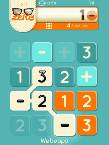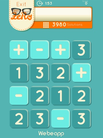 Playing with Get Zero is very easy: in each round you have a board with 16 buttons. The aim is finding as many zero-resulting expressions as you can within 2 minutes. Every match has 3 rounds, and the winner is the player who gets the highest score.