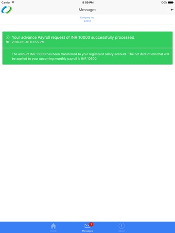 Valid requests will be processed instantantly (or scheduled for nearest banking hour according to NEFT timings of Reserve Bank of India) and the amount will be credited to your Salary Bank Account.