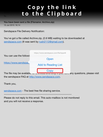- Works with SendSpace links copied from email