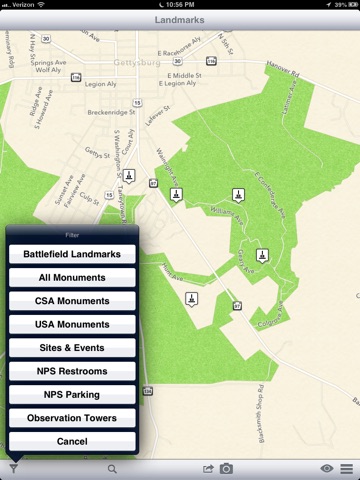 GET THE DETAILS - Once youve found a landmark using your device, touch it with your finger to get more information. Gettysburg Guide contains detailed information on every major event that took place during the battle with the text of over 1000 monuments and markers.