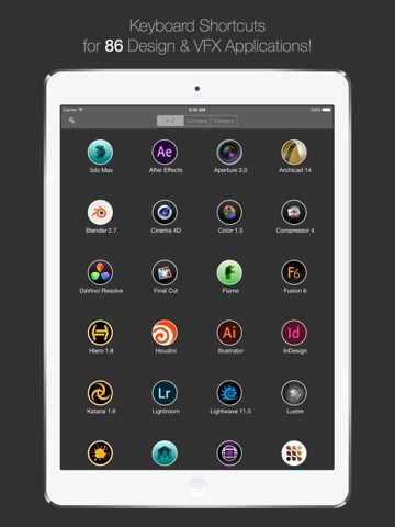 Rated with average 4.5 stars, Gfx Hotkeys is a Universal Application with re-designed interface, customizations, and the full keyboard shortcut list for 86 Design & VFX Applications!