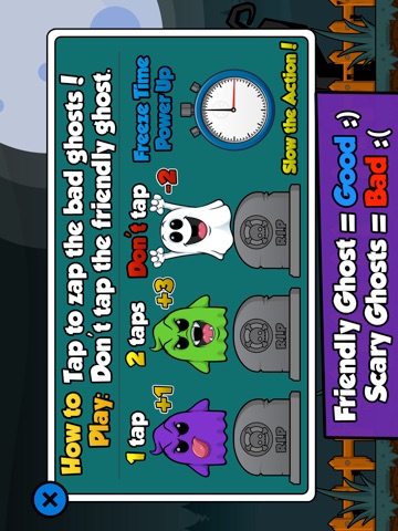 Ghost Blaster is fun and easy game to play. You just tap to zap away all of the spooky ghosts!