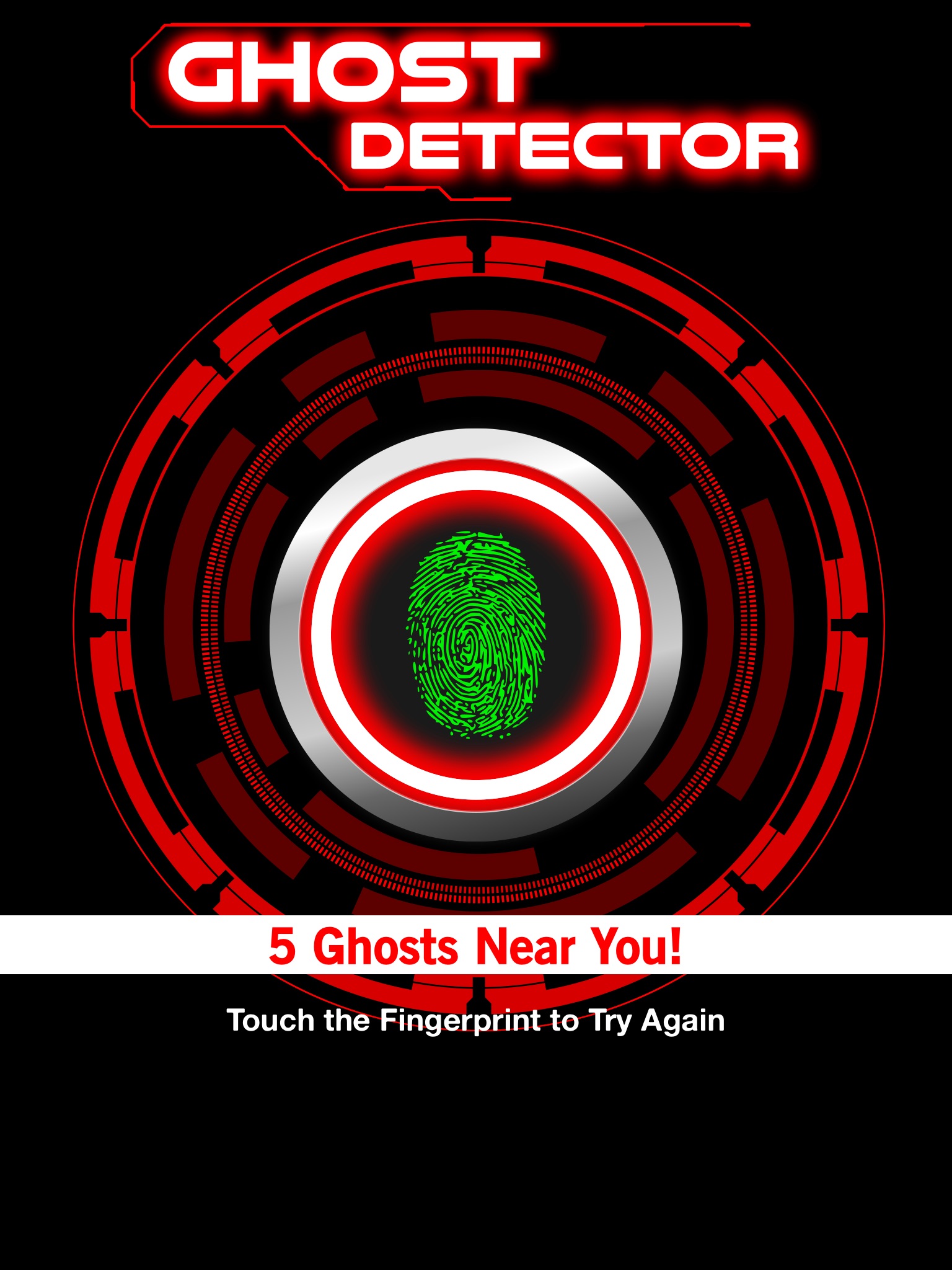 Have fun with your friends and family with this prank ghost detector app. Just touch and hold the fingerprint to do the scan. The app will randomly tell you how many ghosts are near you.