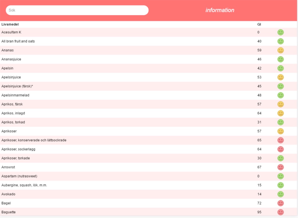 Kolla upp vad olika matvaror har för GI och näringsvärden. GI-värdet är en riktlinje. Glykemiskt index (GI) är ett sätt att rangordna livsmedel efter hur snabbt kolhydraterna omvandlas till blodsocker. Livsmedel med lågt GI kallas långsamma, medan livsmedel med högt GI kallas snabba.