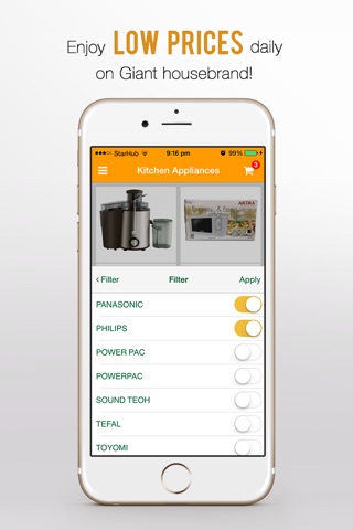 Experience the convenience of grocery shopping at your fingertips. Giant Online Grocery Store brings to you more than 60,000 products, right from groceries, fruits & vegetables, meat & seafood, dairy & fresh to general merchandises for your daily needs.