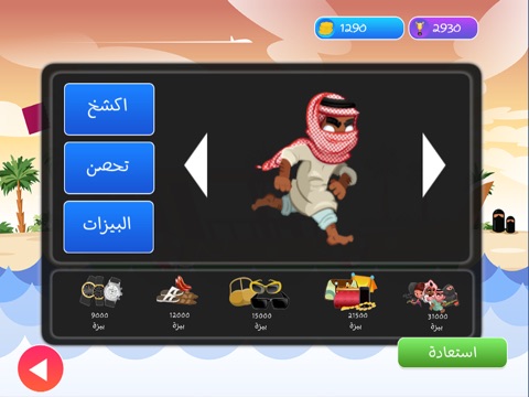 Choose between the 4 characters: Ali, Um AlThahab, Rashid or Farawla and compete against your friends.