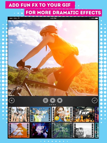 *Over 20+ effects like FIRE, SNOW, LOVE, VINTAGE to give your GIF that extra realistic look.