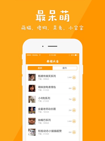 GIF表情是一款完全免费微信、微博、QQ动态图聊天表情APP,聊天斗图必备工具,支持在微信、QQ、微博微博中发送各种表情。开启表情交流的全新聊天模式,体验最欢乐的聊天辅助工具,适用于QQ和微信聊天,集合了萌、傻、酷、拽等多位表情帝的最新表情包内容,秒杀小伙伴们的土掉渣表情。