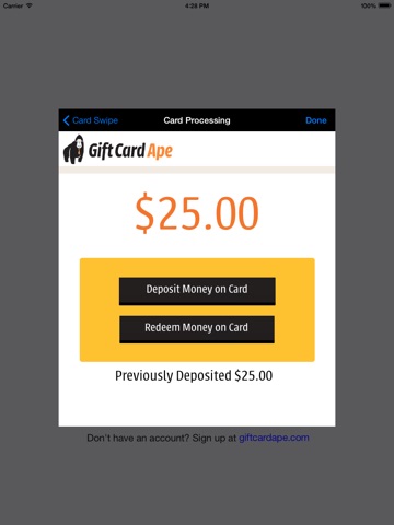 To sign up for this service, purchase gift cards, and receive your card reader go to www.giftcardape.com