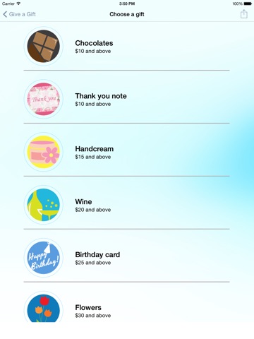 1) Choosing a virtual gift from a selection to thank that special person