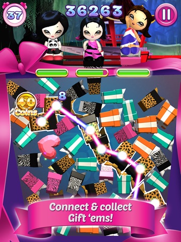 The Gift ‘ems puzzle app features a fast-paced Match 3+ style puzzle game where you connect 3 or more matching Gift ‘ems boxes to eliminate them. The more you connect, the more points you’ll get! Gift ‘ems characters each have unique skills that can help increase your score. Build up their power and then tap them to use their skills! Use your earned coins to collect all the Gift ‘ems dolls! Daily Challenges, Bonus Items, and Premium Characters all help you earn more!