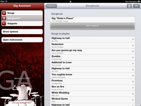 Next song is coming and you don´t know how to start? Don´t remember the tune? What was the number of loops again while playing chorus? Do you have to count in? How fast? The voice wants to sing the song a note lower? When did the keyboard solo start? No problem if you have Gig Assistant!