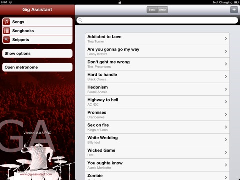 Next song is coming and you don´t know how to start? Don´t remember the tune? What was the number of loops again while playing chorus? Do you have to count in? How fast? The voice wants to sing the song a note lower? When did the keyboard solo start? No problem if you have Gig Assistant!