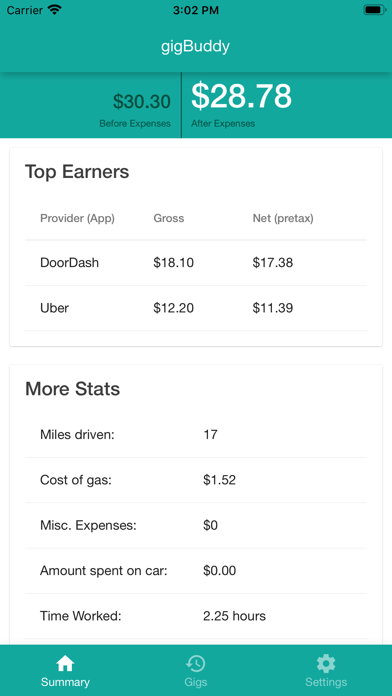 3. Enter total amount paid to you by each (app). GigBuddy will subtract your expenses , so you can see how much you earned (pre-tax).