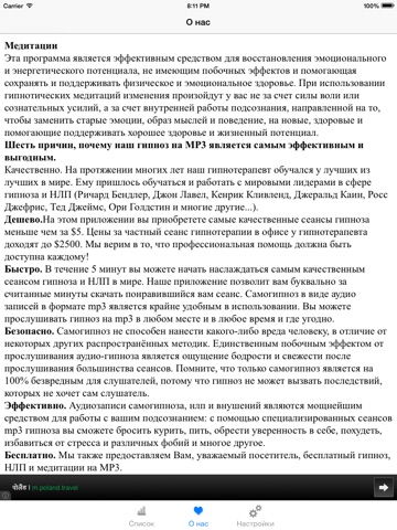 гипноза и НЛП в мире. Наше приложение позволит вам буквально за считанные минуты скачать понравившийся вам сеанс. Самогипноз в виде аудио записей в формате mp3 является крайне удобным в использовании. Вы можете прослушивать гипноз на mp3 в любом месте и в любое время и где угодно.