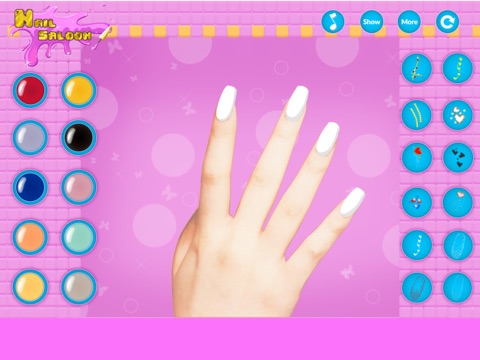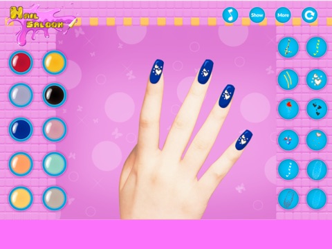 The only thing you need to do is, choosing your favourite colour from the left menu and see the awesome change of your nails. Then decide how to decorate your nails from the right menu. Thats all !