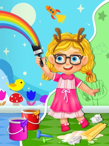 Help doll Mable design her fantasy house by painting and choosing decorations.
